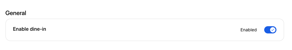 Toggle ON to allow eaters to place an order for digital dine-in via QR code. Toggle OFF to disable the digital dine-in fulfillment option.