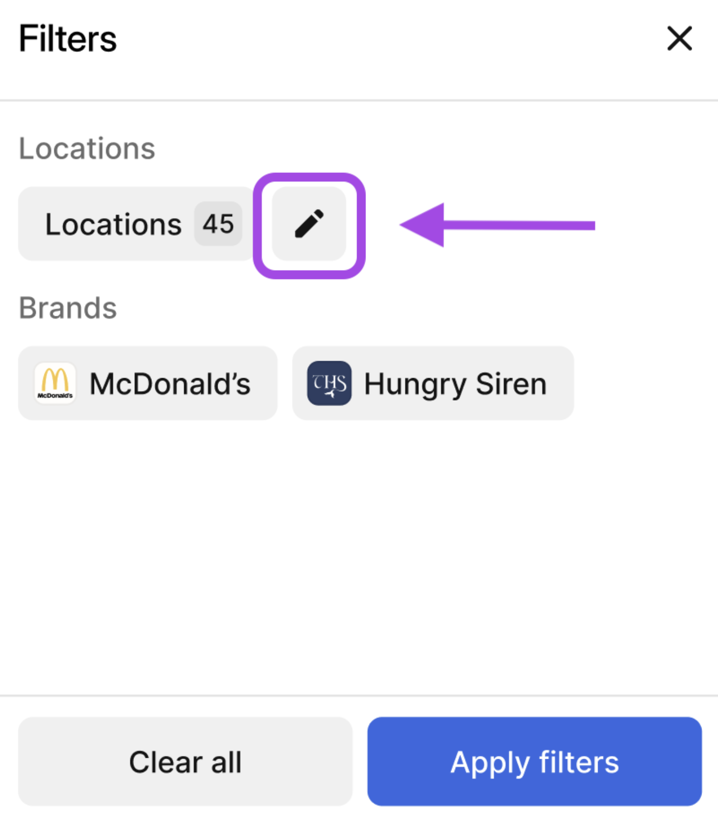 Then in the filters page, click the Pencil icon to open the location filters.
