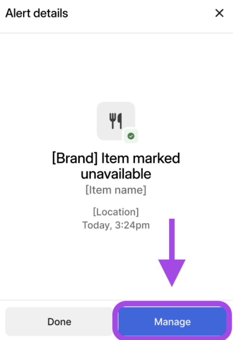 • Menu publishing fails for one or more delivery service integrations or locations. Menu Publish Live Alert