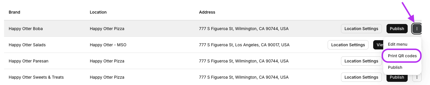 Follow the steps below to print your dine-in QR codes, depending on your preferences.