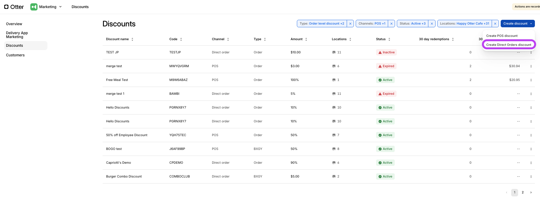 - You can easily find Direct Orders discounts by using the 'Channel' filter to narrow down your results.
