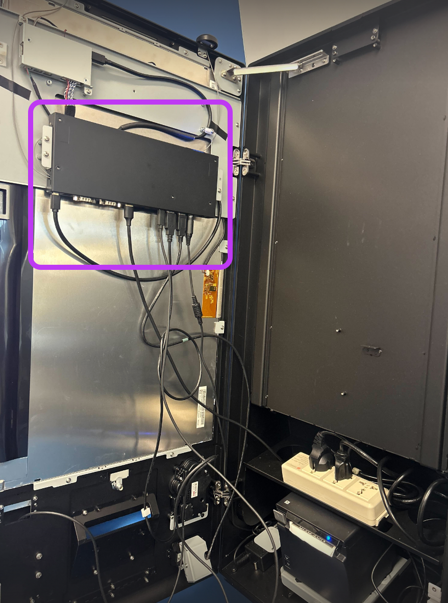 3 If the card reader seems to not hold a charge, open the kiosk to access the connection box.