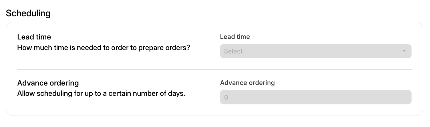 | Advance Ordering | Enter the number of days an eater can place an order in advance of event day. |