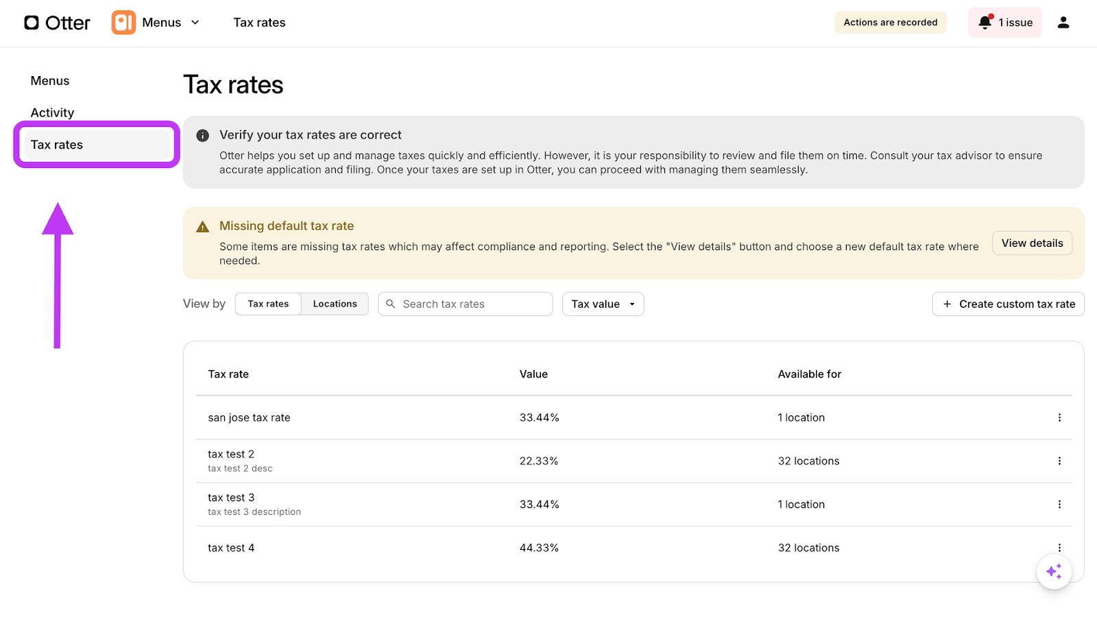 If you forget to set the item tax rate during creation, Otter will notify you before publishing.