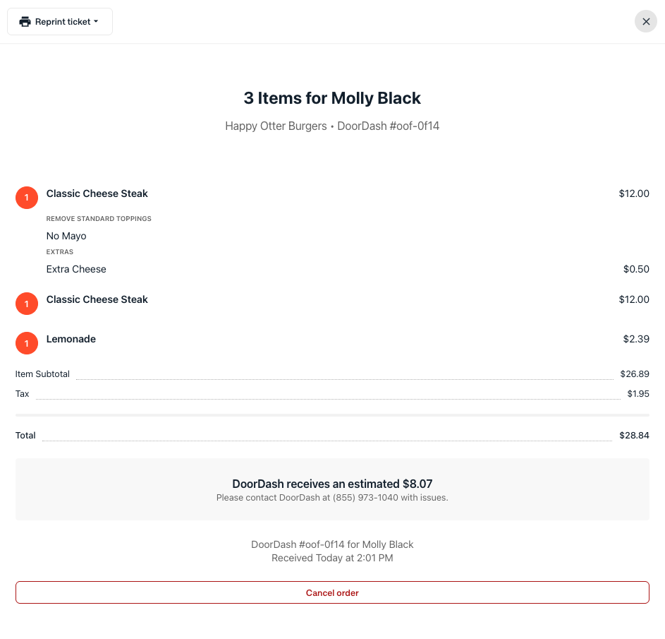 For more information on Order History— like filtering by locations, channels, or injection status— use the Order History Dashboard from the Otter Dashboard.