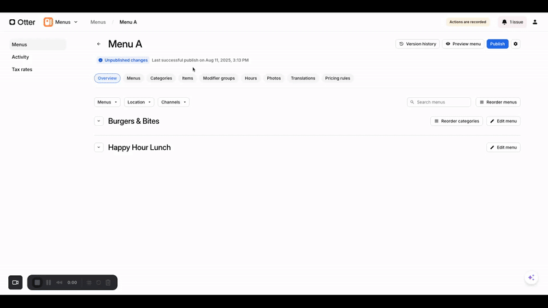 You can bulk update menu prices directly in the Otter Dashboard or using an Excel import option for big updates.