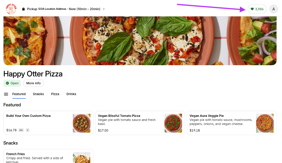2 When they sign in, any available Loyalty points will display. 3 To get to the Loyalty portal, eaters can click on the points or profile icon in the top-right corner.