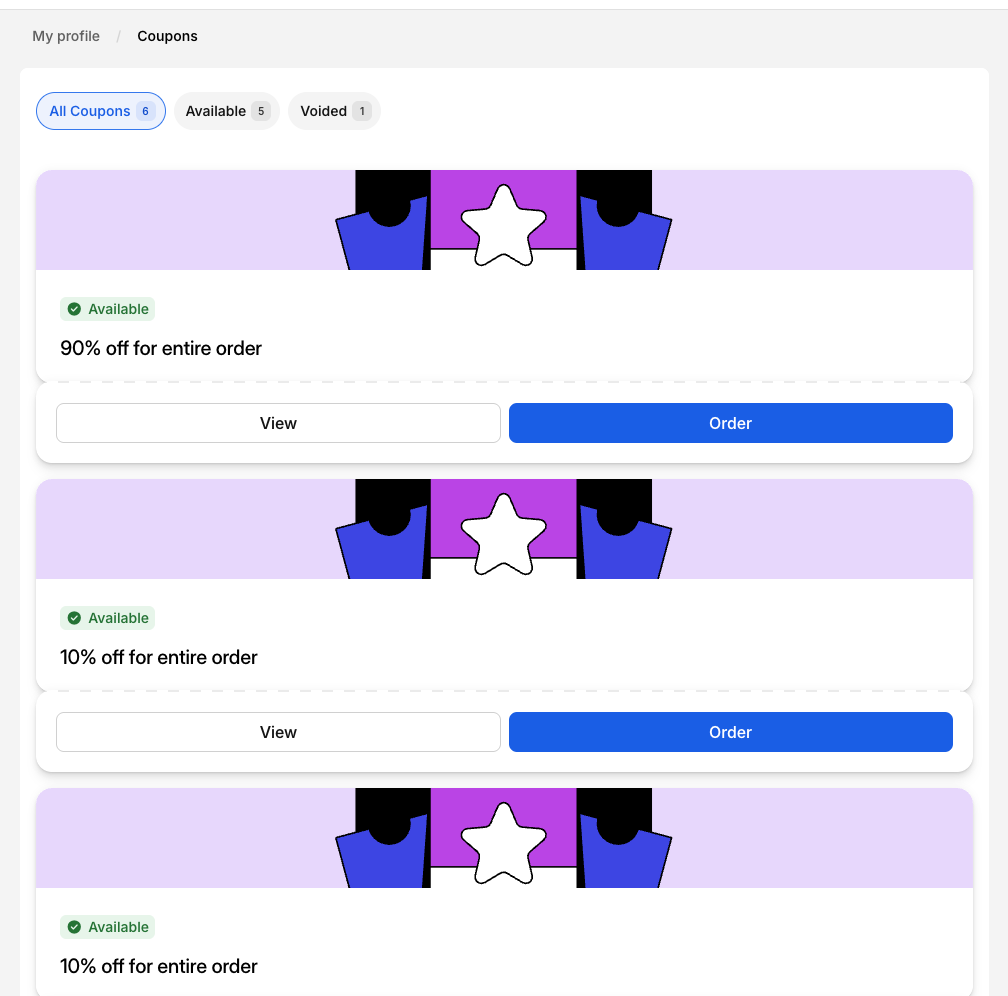 If an eater has redeemed points in the portal for a coupon code, you should see that listed as an option during checkout under Coupons in your account. -