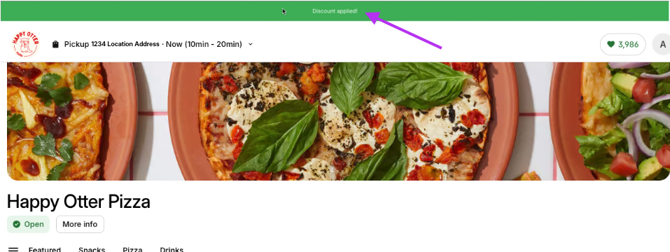 Once an eater has an available loyalty balance, they can redeem points to apply as a discount towards an order. Rewards can be redeemed during the checkout process by: