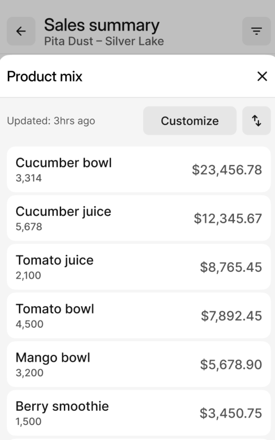 View real-time sales summaries that match your Otter Dashboard reports.