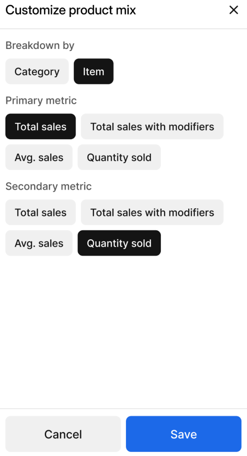 The Product Mix Report can be located within the Sales Summary page of the Otter Go app. This report gives you a quick and easy way to understand what menu items are selling at your restaurant. Go to the Otter POS Product Mix Report article for more information.