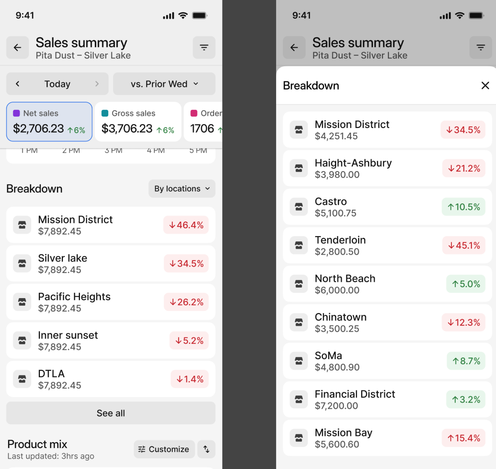 Scroll down to find the Product Mix breakdown.