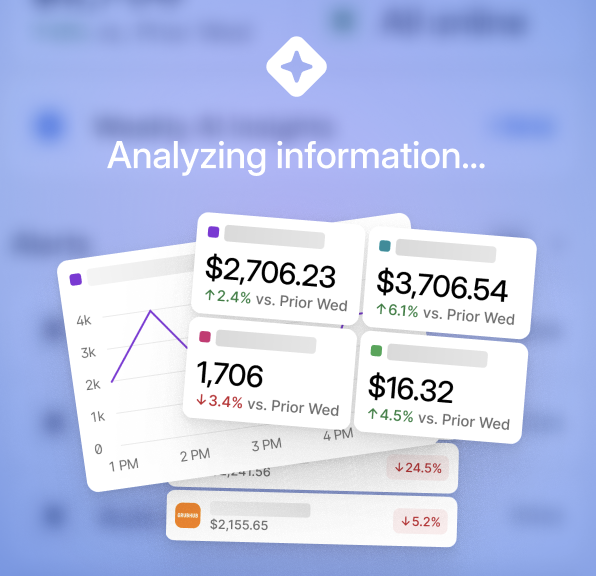 The AI Insights feature is in the Sales Performance tab of the Otter Go App and gives operators key performance analysis for one or more locations. These insights analyze 8 weeks of data, emphasizing 2 most recent weeks.