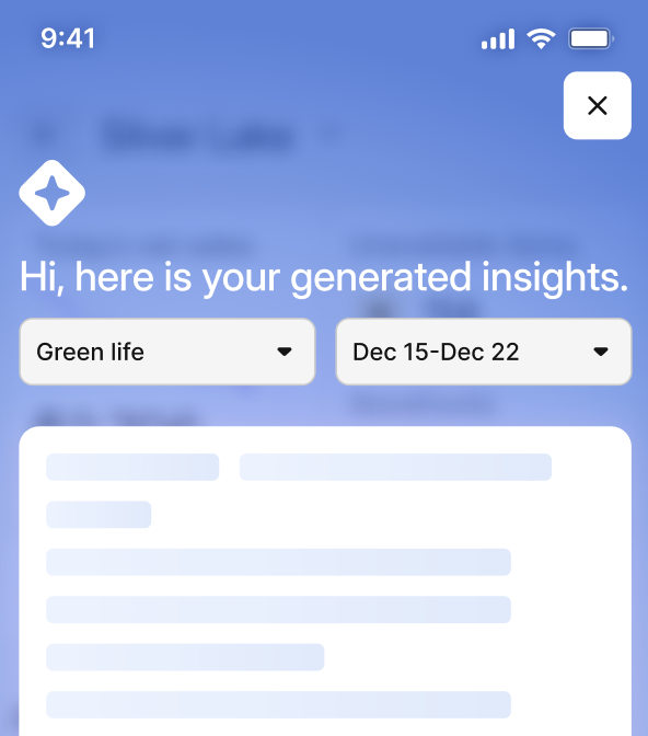 Generate InsightsTap to Generate AI Analysis for the selected store. AI will analyze the last 8 weeks of data with focus on the most recent 2 weeks. A loading icon will show while insights are being generated. |