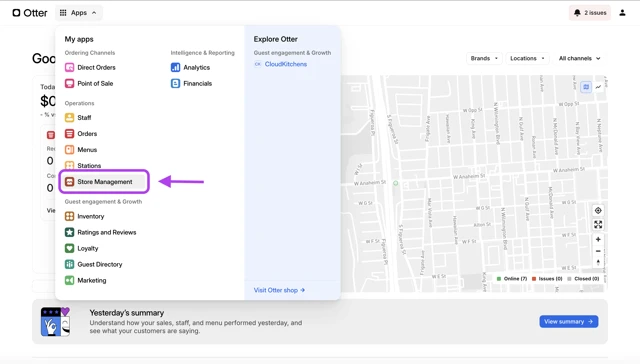 Go to the Otter Dashboard. Click on the Apps dropdown and select the Store Management app. |