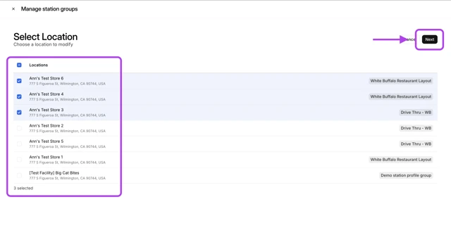 With the Store Management bulk tools, you can quickly update the station group for multiple locations. Using the bulk station group assignment tool is ideal for multi-location or brand-wide rollout configuration corrections.