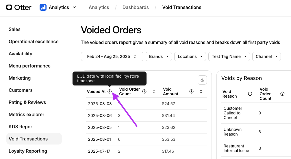 El Reporte de Disponibilidad de Otter es una nueva función dentro de la aplicación Otter Analytics que te proporciona datos históricos sobre el rendimiento de tiempo de actividad e inactividad de tu negocio. Esto te permite tomar decisiones informadas para mejorar las operaciones.