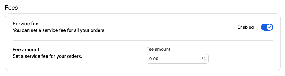 Puedes ingresar un cargo por servicio en porcentaje para todos los pedidos para recoger.