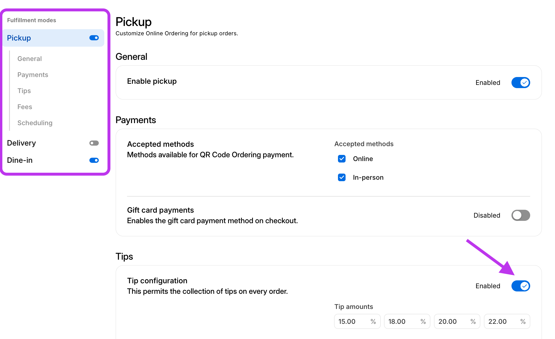 - Sí: solo necesitas habilitar las propinas para ambos modos de cumplimiento en sus pestañas correspondientes.