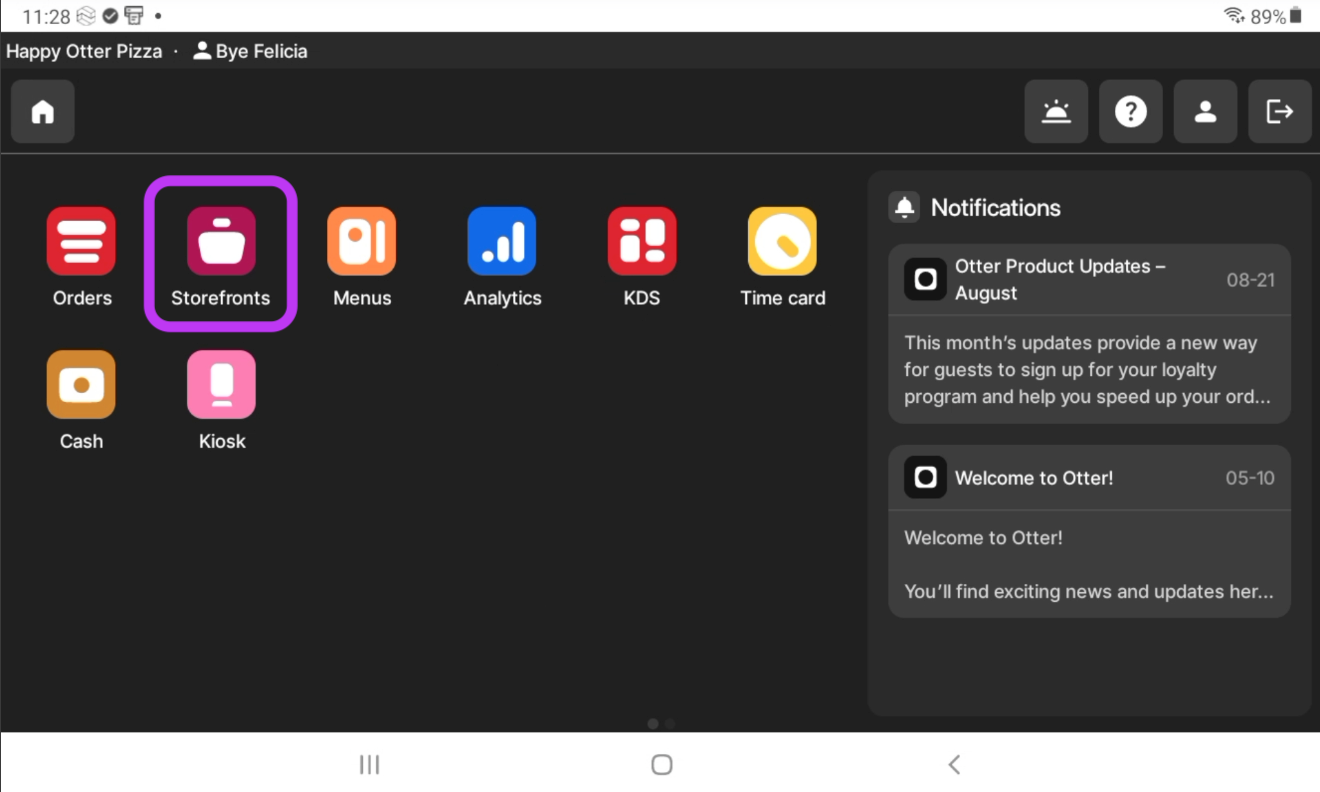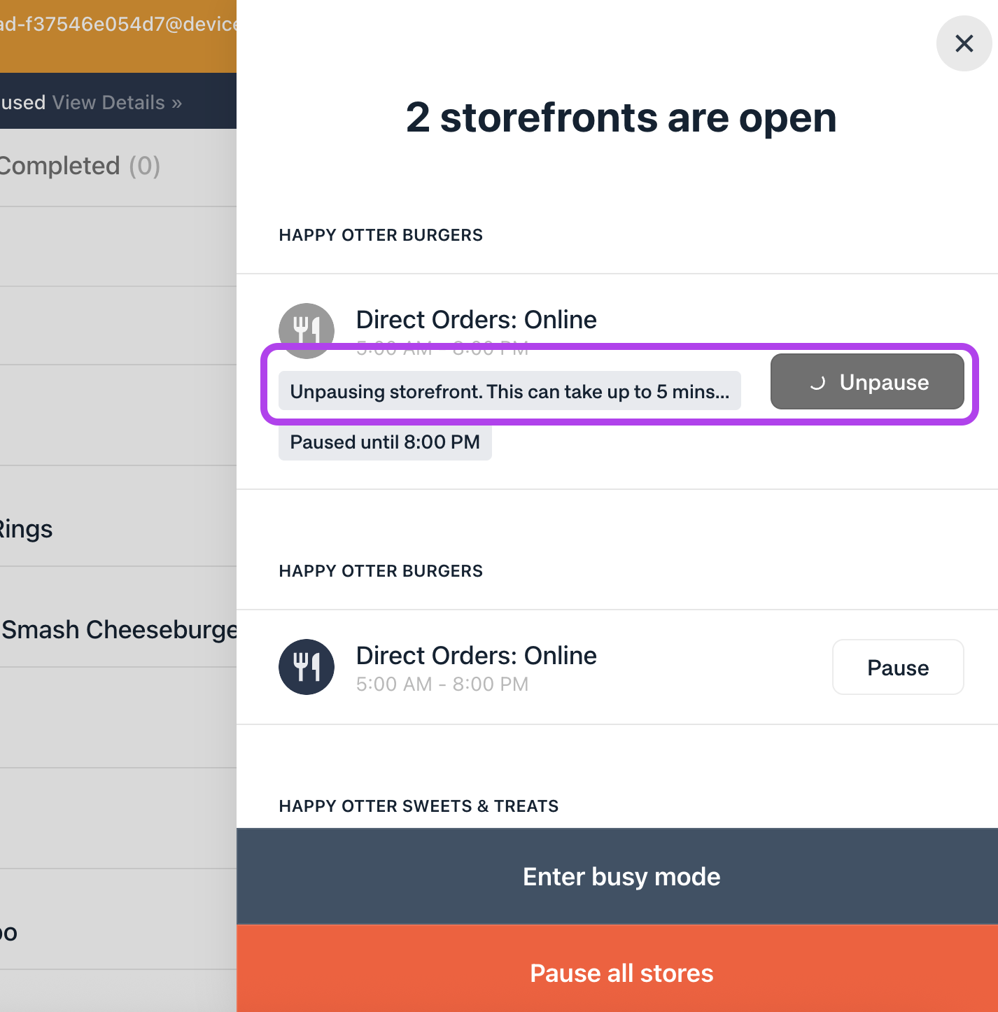 Pausar un Storefront desde la Aplicación Administrador de Negocios de Otter