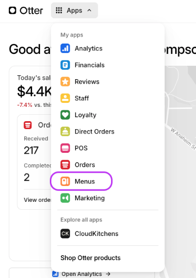 Desde el Panel de Otter, haz clic en Apps > Menús.