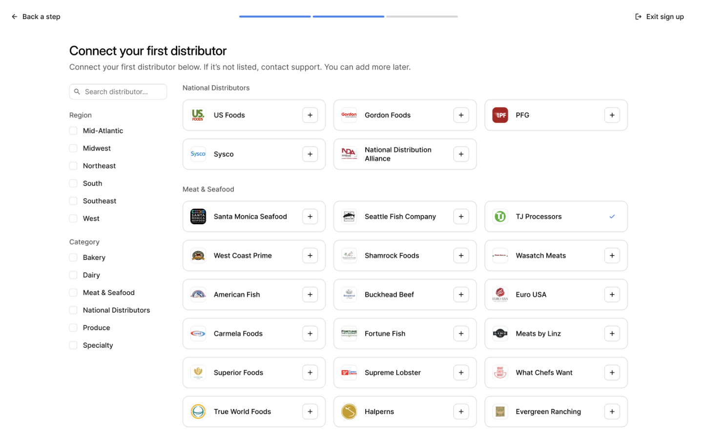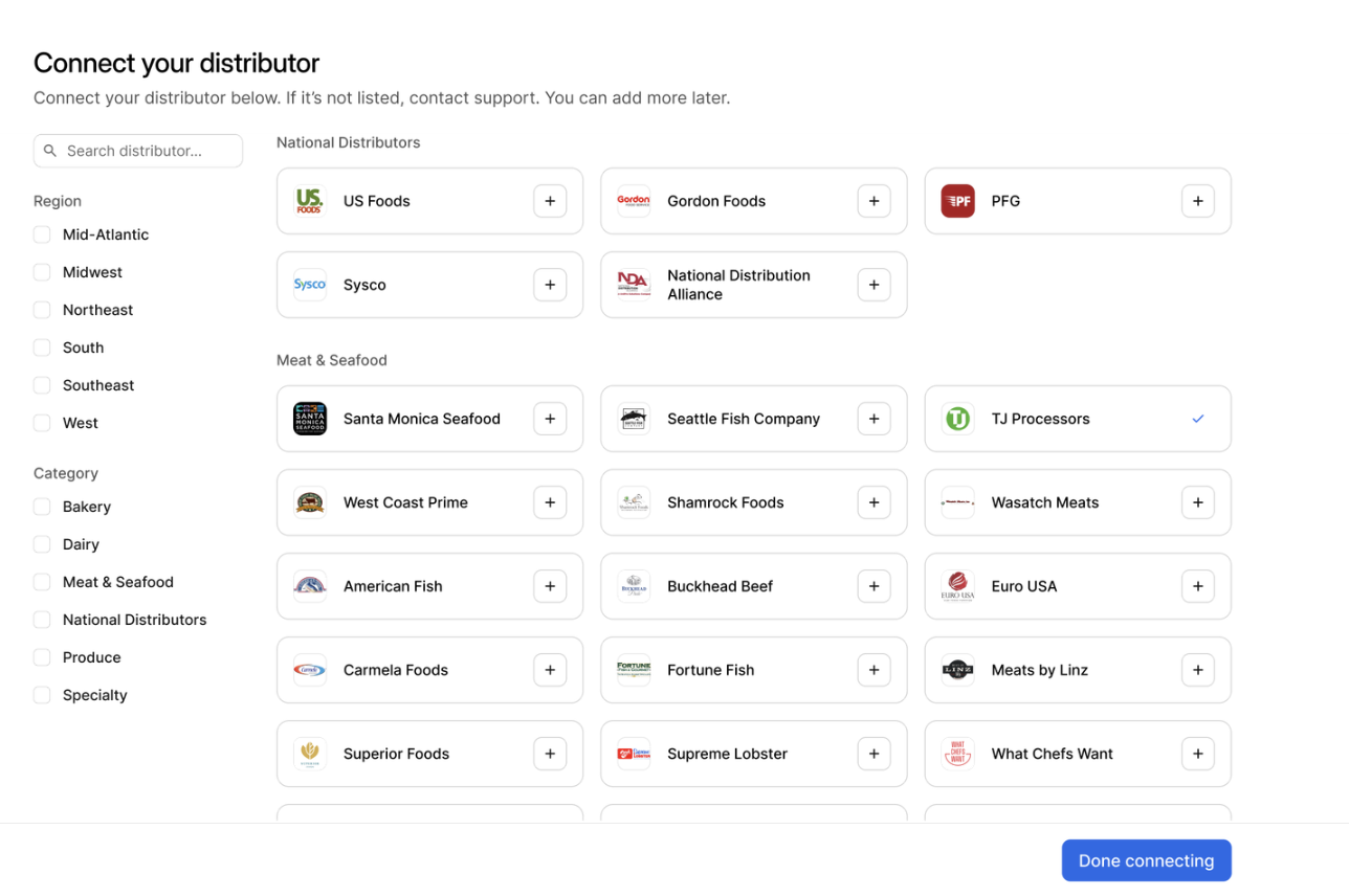 Al conectar tu distribuidor para los Reembolsos de Otter, si no ves a tu distribuidor de alimentos actual en la lista, puedes hacer clic en [+Agregar distribuidor] para enviar una solicitud para que ese distribuidor sea agregado en el futuro para los Reembolsos de Otter.