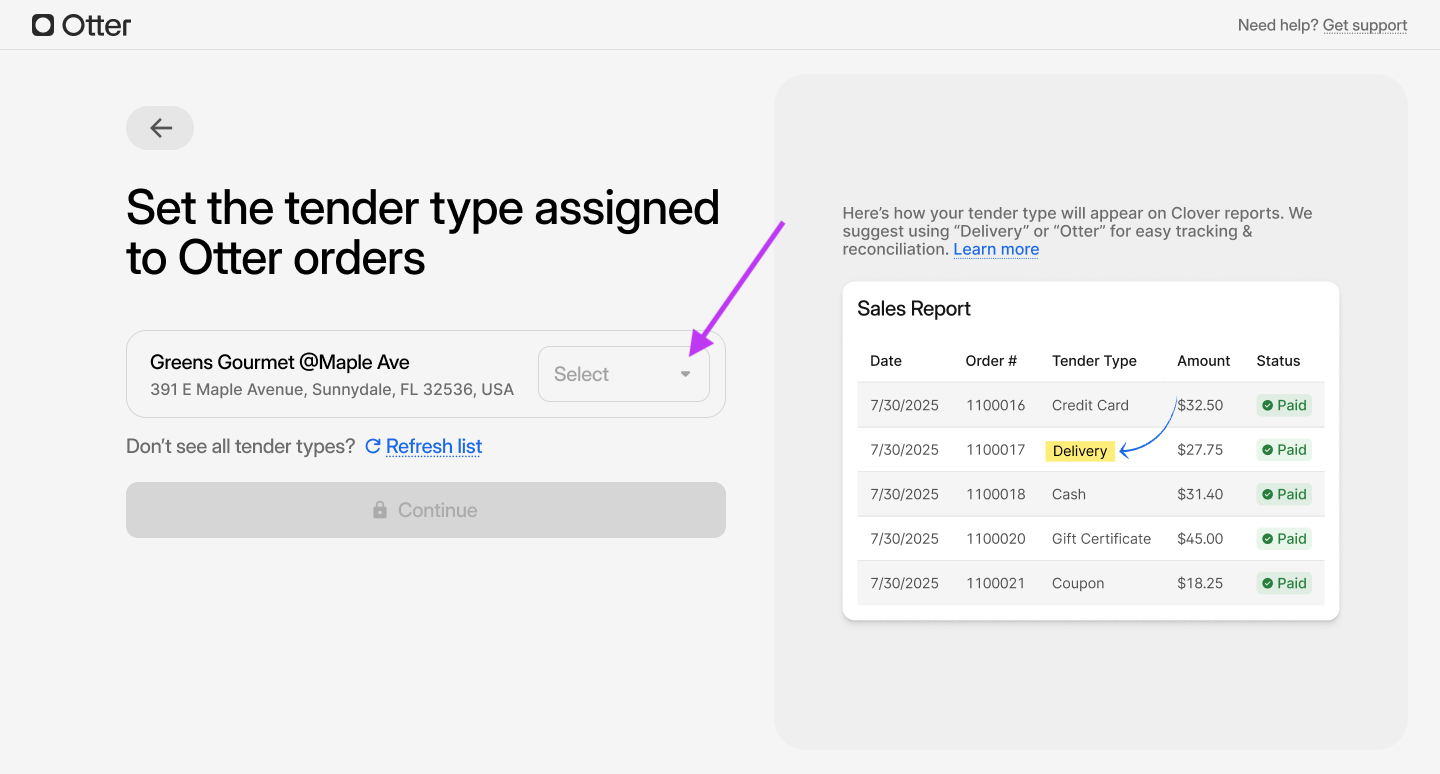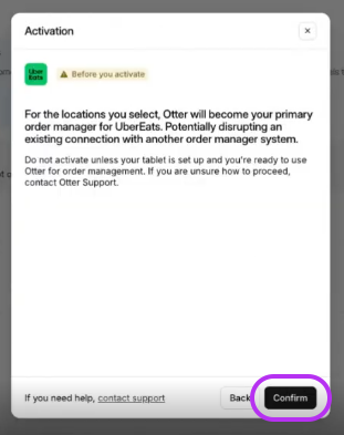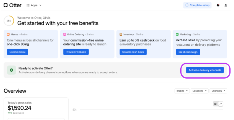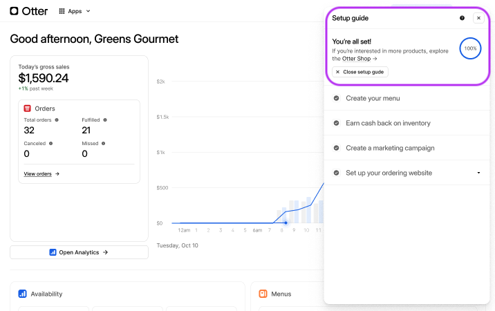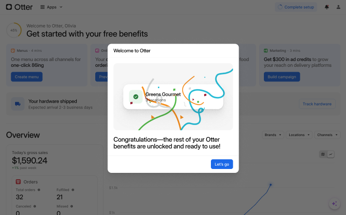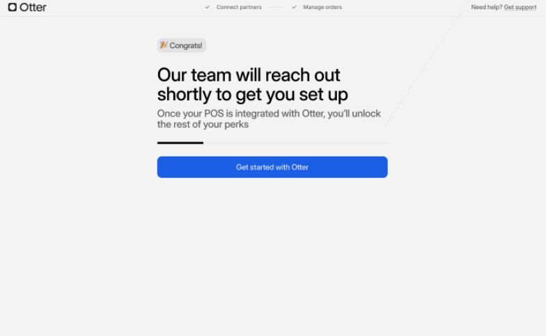 Una vez que tu sistema POS haya sido conectado, serás redirigido al Panel de Otter para completar la configuración.
