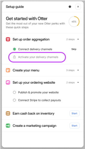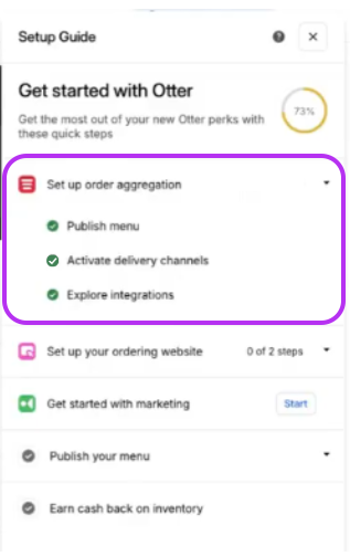 Se mostrará una lista de verificación de la Guía de Configuración para guiarte fácilmente a través del proceso. Desde esa lista de verificación del Panel de Otter serás guiado a: