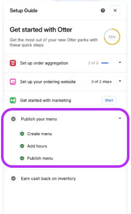 9 Después de publicar tu menú, las tareas del menú se marcarán como completadas en la lista de verificación de la Guía de Configuración. -