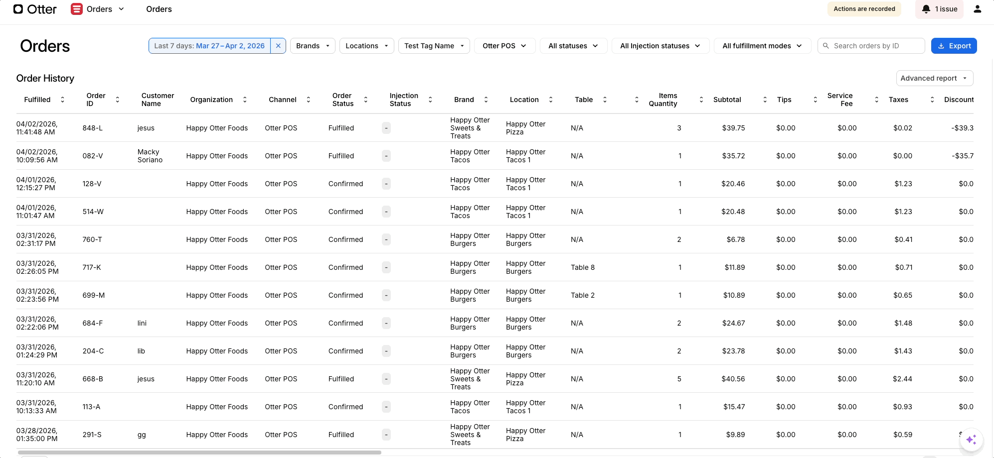 Puedes ver el Historial de Pedidos desde tu Otter POS, tableta o Gestor de Pedidos Web— el historial de pedidos que se muestra allí tendrá una vista de detalles y acciones más limitada.