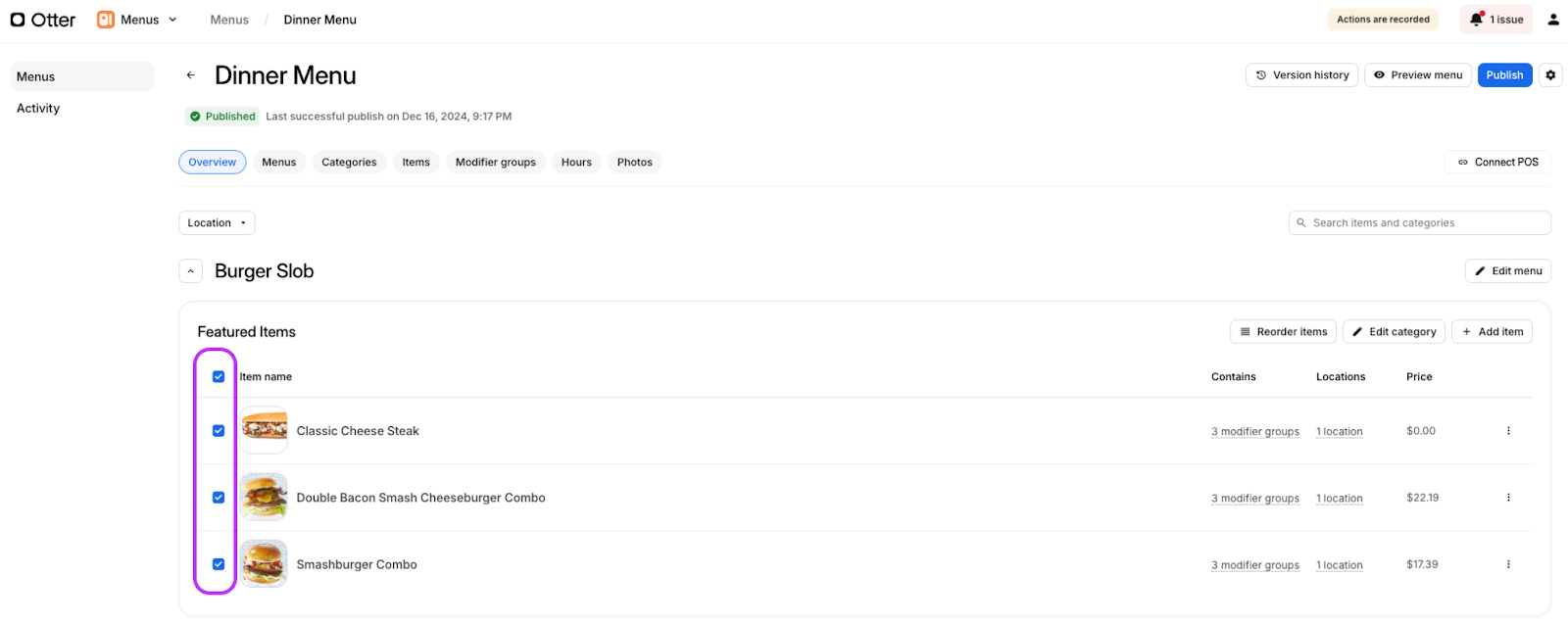 Mantener tu menú preciso en todos los canales de pedidos es clave para evitar confusiones, pedidos incorrectos y reembolsos innecesarios. Aunque eliminar un artículo temporalmente es útil para marcar algo como no disponible, la disponibilidad por canal está diseñada para controlar a largo plazo dónde aparecen los artículos en los diferentes canales.