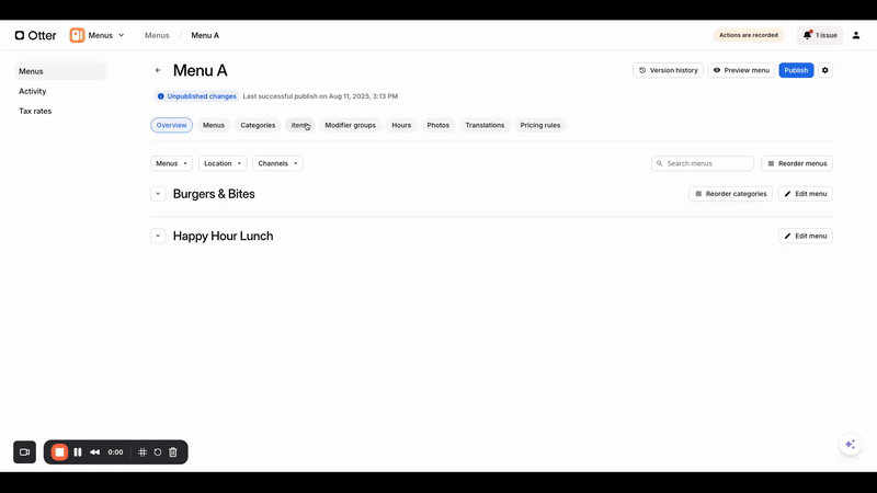 Si vous recevez une erreur de prix négatif lors de la tentative de publication de votre menu, consultez comment la résoudre ici.