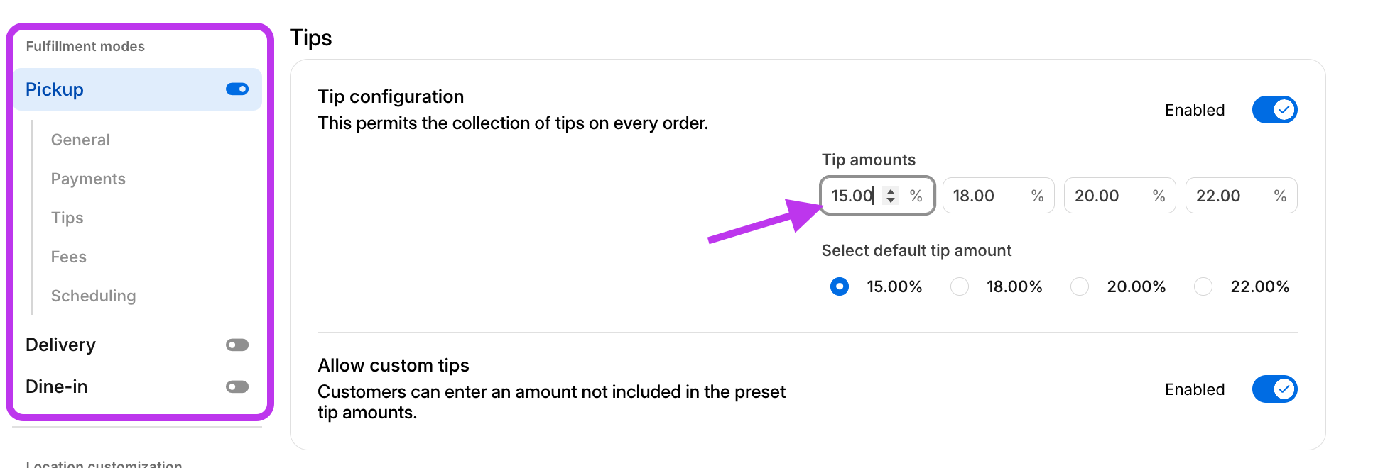 - Oui— il vous suffit d’activer les pourboires pour ces deux modes de traitement sous leurs onglets correspondants.