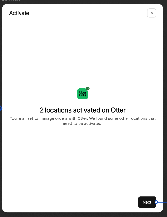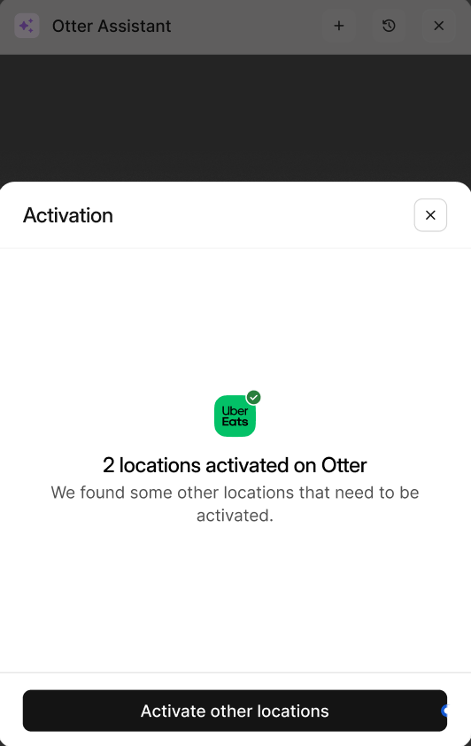 Une fois que vous êtes prêt à utiliser Otter comme votre gestionnaire de commandes, suivez l'une des méthodes ci-dessous pour activer votre intégration Uber Eats. Avant de continuer, assurez-vous que votre appareil Otter (tablette ou POS) est entièrement configuré et prêt à gérer les commandes. Activer votre intégration signifie qu'Otter sera désormais votre gestionnaire de commandes principal.