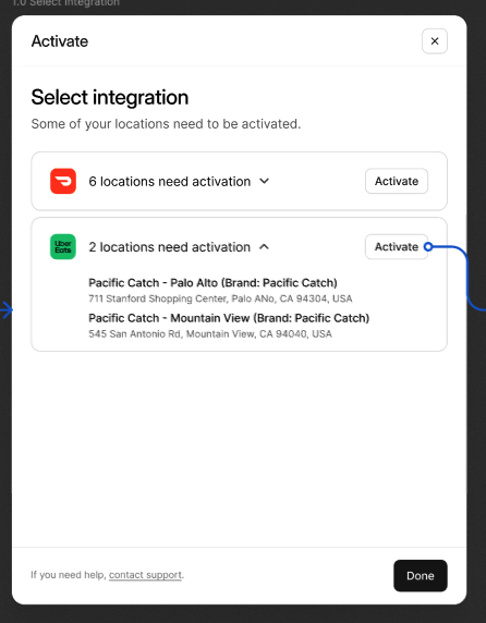 8 Confirmez les emplacements à connecter avec Uber Eats.