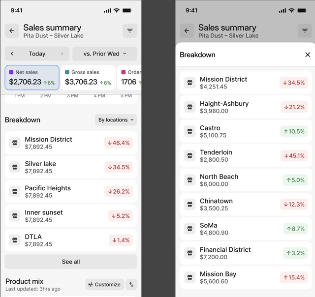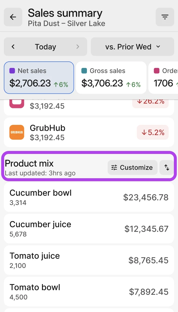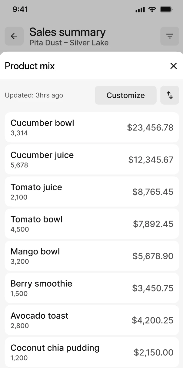 - Approfondir l’analyse : Accédez à des tendances globales et examinez en détail les articles et modificateurs pour une vue précise des préférences clients.