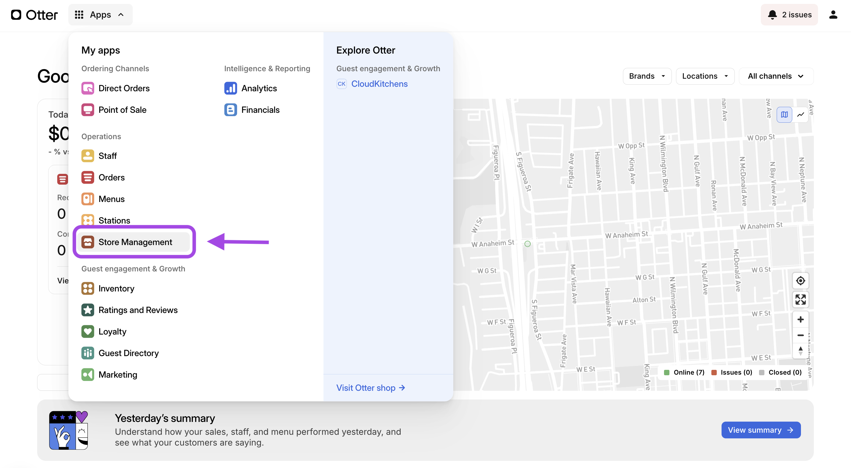 Accédez au Tableau de bord Otter. Cliquez sur le menu déroulant Applications et sélectionnez l’application Gestion du magasin. |