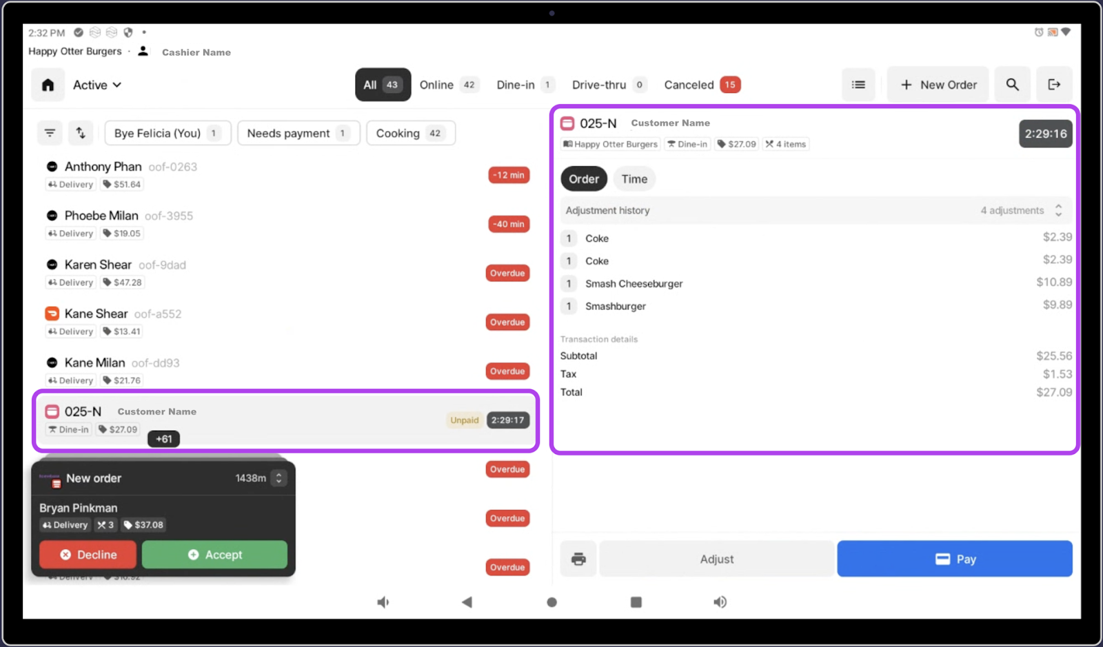 Les tests peuvent inclure la passation d'une commande via un kiosque, un code QR pour manger sur place, ou le site web de commandes directes sur votre appareil Otter ou via le site web de commandes directes pour s'assurer que les commandes s'intègrent correctement dans le Gestionnaire de Commandes. -
