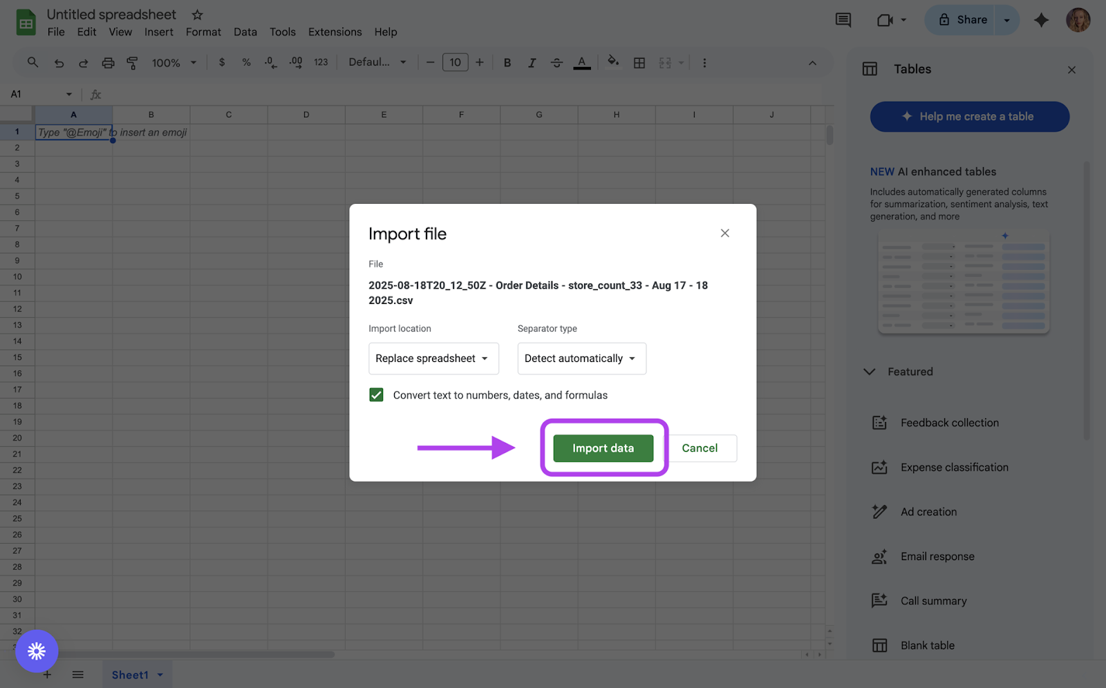 Pour importer les données dans un fichier Excel ou Google Sheet :